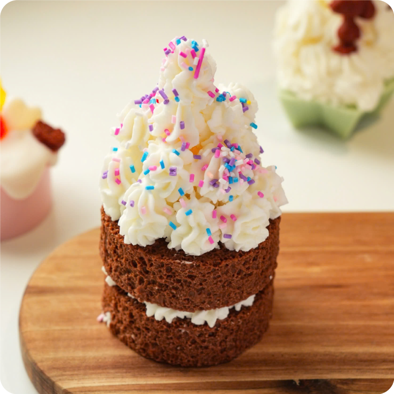- 2 Lớp Bánh Xốp “Thơm Ngon”: Các lớp “bánh xốp” được tạo hình sống động, mô phỏng kết cấu xốp nhẹ của bánh thật, mang lại cảm giác thèm muốn ngay khi nhìn thấy.